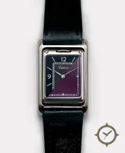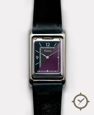Eine Dress-Uhr mit einem 23mm Gehäuse im Vintage-Stil gefertigt aus Edelstahl mit einem Zifferblatt in lila und einem aufwendigen "two-tone diagonal"-Muster.
