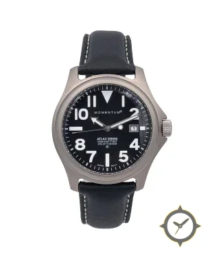 Eine Field-Uhr mit einem markanten 43.5mm Auftritt am Handgelenk, gefertigt aus Titan mit einem Zifferblatt in schwarz und einer besonderen "matte"-Oberfläche.