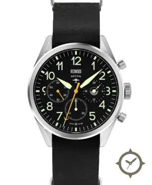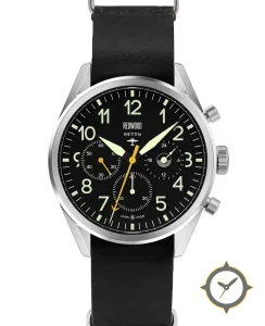 Eine Pilot-Uhr mit einem 34.5mm Gehäuse im Vintage-Stil gefertigt aus Edelstahl mit einem Zifferblatt in schwarz und einer besonderen "matte"-Oberfläche.