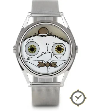 Eine Dress-Uhr mit einem 36mm Gehäuse im Vintage-Stil gefertigt aus Edelstahl mit einem Zifferblatt in weiß und einer besonderen "printed"-Oberfläche.