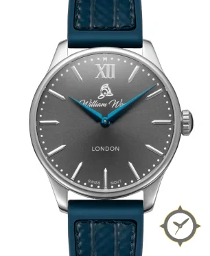 Eine Dress-Uhr mit einem vielseitigen 38mm Gehäuse, das an fast jedes Handgelenk passt, gefertigt aus Edelstahl mit einem Zifferblatt in grau und einer besonderen "sunburst"-Oberfläche.