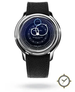 Eine Dress-Uhr mit einem 35.5mm Gehäuse im Vintage-Stil gefertigt aus Edelstahl mit einem Zifferblatt in blau und einer besonderen "lacquer"-Oberfläche.