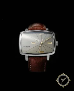 Eine Dress-Uhr mit einem 31mm Gehäuse im Vintage-Stil gefertigt aus Edelstahl mit einem Zifferblatt in grau und einer besonderen "brushed"-Oberfläche.