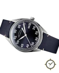 Eine Pilot-Uhr mit einem vielseitigen 41mm Gehäuse, das an fast jedes Handgelenk passt, gefertigt aus Edelstahl mit einem Zifferblatt in blau und einer besonderen "sunburst (sunray)"-Oberfläche.