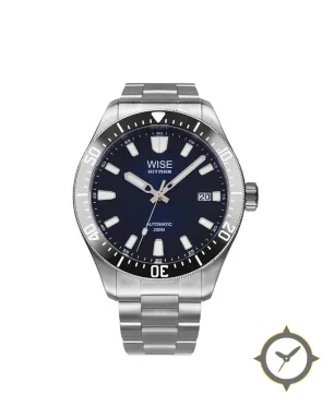 Eine Taucheruhr-Uhr mit einem vielseitigen 40.5mm Gehäuse, das an fast jedes Handgelenk passt, gefertigt aus Edelstahl mit einem Zifferblatt in marineblau und einer besonderen "matte"-Oberfläche.
