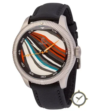 Eine Taucheruhr-Uhr mit einem markanten 51mm Auftritt am Handgelenk, gefertigt aus Edelstahl mit einem Zifferblatt in weiß und einer besonderen "glossy with printed finish"-Oberfläche.