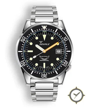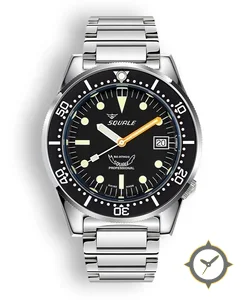Eine Taucheruhr-Uhr mit einem 37.5mm Gehäuse im Vintage-Stil gefertigt aus Edelstahl mit einem Zifferblatt in schwarz und einer besonderen "matte"-Oberfläche.