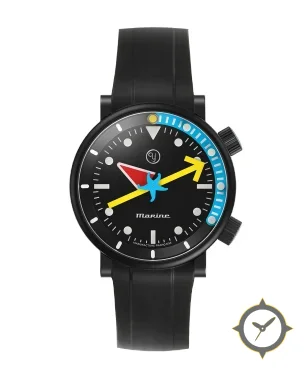 Eine Taucheruhr-Uhr mit einem vielseitigen 39.5mm Gehäuse, das an fast jedes Handgelenk passt, gefertigt aus Edelstahl mit einem Zifferblatt in schwarz und einer besonderen "matte"-Oberfläche.