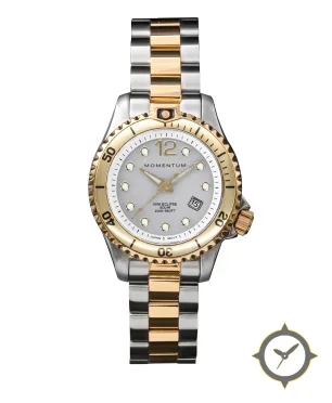 Eine Taucheruhr-Uhr mit einem 33mm Gehäuse im Vintage-Stil gefertigt aus Edelstahl mit einem Zifferblatt in weiß und einer besonderen "smooth"-Oberfläche.