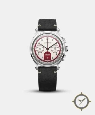 Eine Chronograph-Uhr mit einem vielseitigen 40mm Gehäuse, das an fast jedes Handgelenk passt, gefertigt aus Edelstahl mit einem Zifferblatt in weiß und einer besonderen "matte"-Oberfläche.