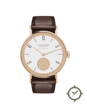 Eine Dress-Uhr mit einem 30mm Gehäuse im Vintage-Stil gefertigt aus Gold mit einem Zifferblatt in weiß und einer besonderen "matte"-Oberfläche.