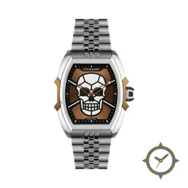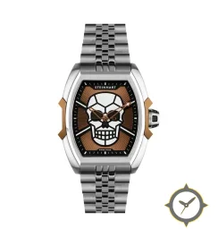 Eine Luxus-Uhr mit einem 37mm Gehäuse im Vintage-Stil gefertigt aus Edelstahl mit einem Zifferblatt in braun und einer besonderen "textured/grain"-Oberfläche.