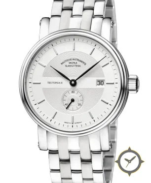 Eine Dress-Uhr mit einem 33mm Gehäuse im Vintage-Stil gefertigt aus Edelstahl mit einem Zifferblatt in weiß und einer besonderen "concentric guilloché / finely ridged texture"-Oberfläche.