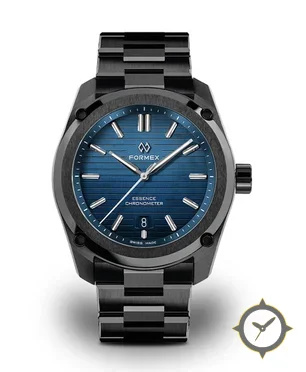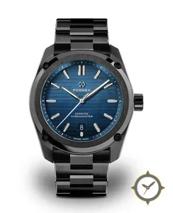 Eine Sport-Uhr mit einem markanten 45mm Auftritt am Handgelenk, gefertigt aus Edelstahl mit einem Zifferblatt in blau und einer besonderen "brushed with horizontal lines"-Oberfläche.