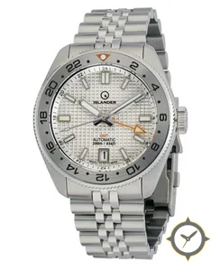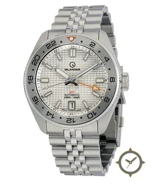 Eine GMT-Uhr mit einem markanten 41.5mm Auftritt am Handgelenk, gefertigt aus Edelstahl mit einem Zifferblatt in silber und einer besonderen "waffle / raised grid texture"-Oberfläche und einer echten GMT-Funktion, mit der du eine zweite Zeitzone verfolgen kannst.