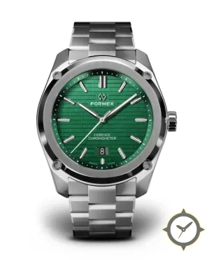 Eine Sport-Uhr mit einem markanten 51mm Auftritt am Handgelenk, gefertigt aus Edelstahl mit einem Zifferblatt in grün und einer besonderen "horizontal lined / teak-style texture"-Oberfläche.