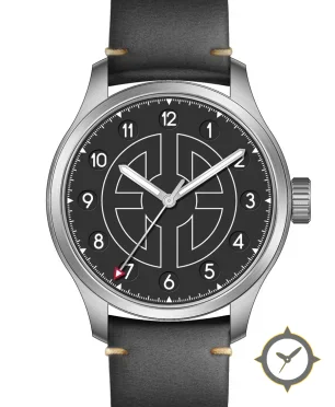 Eine Field-Uhr mit einem vielseitigen 38mm Gehäuse, das an fast jedes Handgelenk passt, gefertigt aus Edelstahl mit einem Zifferblatt in schwarz und einer besonderen "matte"-Oberfläche.
