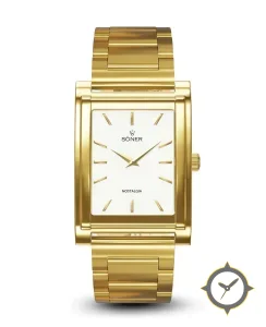 Eine Dress-Uhr mit einem 31mm Gehäuse im Vintage-Stil gefertigt aus Gold mit einem Zifferblatt in weiß und einer besonderen "smooth"-Oberfläche.