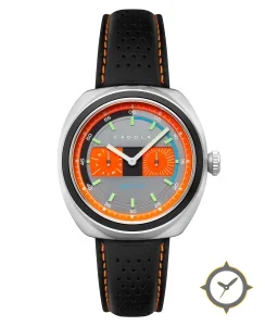 Eine Chronograph-Uhr mit einem markanten 49mm Auftritt am Handgelenk, gefertigt aus Edelstahl mit einem Zifferblatt in grau und einer besonderen "matte"-Oberfläche.