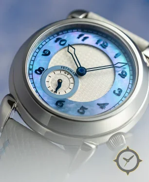 Eine Dress-Uhr mit einem markanten 41.5mm Auftritt am Handgelenk, gefertigt aus Edelstahl mit einem Zifferblatt in blau und einer besonderen "central guilloché (engine-turned) with a mother-of-pearl outer ring"-Oberfläche.