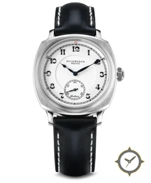 Eine Dress-Uhr mit einem markanten 44.5mm Auftritt am Handgelenk, gefertigt aus Edelstahl mit einem Zifferblatt in weiß und einer besonderen "enamel (smooth)"-Oberfläche.
