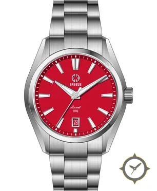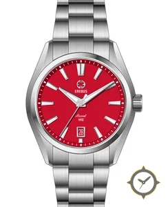 Eine Sport-Uhr mit einem markanten 43.5mm Auftritt am Handgelenk, gefertigt aus Edelstahl mit einem Zifferblatt in rot und einer besonderen "lacquer"-Oberfläche.