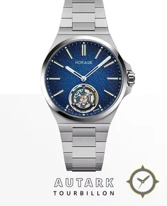 Eine Luxus-Uhr mit einem 35mm Gehäuse im Vintage-Stil gefertigt aus Edelstahl mit einem Zifferblatt in blau und einer besonderen "frosted/grained textured finish (sandblasted effect)"-Oberfläche.