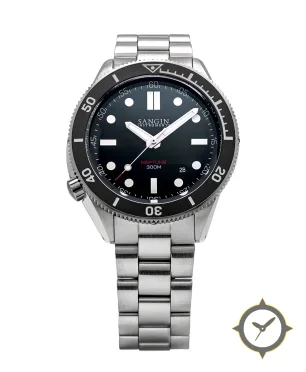 Eine Taucheruhr-Uhr mit einem markanten 45mm Auftritt am Handgelenk, gefertigt aus Edelstahl mit einem Zifferblatt in schwarz und einer besonderen "matte"-Oberfläche.