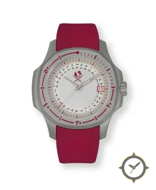 Eine Taucheruhr-Uhr mit einem vielseitigen 41mm Gehäuse, das an fast jedes Handgelenk passt, gefertigt aus Titan mit einem Zifferblatt in weiß und einer besonderen "matte"-Oberfläche.