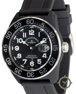 Eine Taucheruhr-Uhr gefertigt aus Edelstahl mit einem Zifferblatt in schwarz und einer besonderen "matte"-Oberfläche.