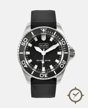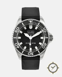 Eine Taucheruhr-Uhr mit einem markanten 48mm Auftritt am Handgelenk, gefertigt aus Edelstahl mit einem Zifferblatt in schwarz und einer besonderen "matte"-Oberfläche.