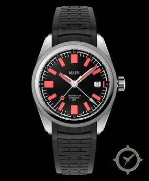 Eine GMT-Uhr mit einem 32.5mm Gehäuse im Vintage-Stil gefertigt aus Edelstahl mit einem Zifferblatt in schwarz und einer besonderen "matte"-Oberfläche und einer echten GMT-Funktion, mit der du eine zweite Zeitzone verfolgen kannst.