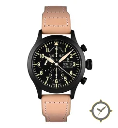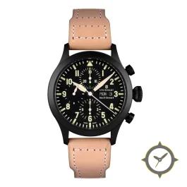 Eine Pilot-Uhr mit einem markanten 47.5mm Auftritt am Handgelenk, gefertigt aus Edelstahl mit einem Zifferblatt in schwarz und einer besonderen "matte"-Oberfläche.