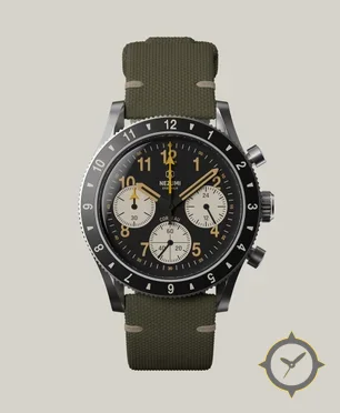 Eine Chronograph-Uhr mit einem markanten 45mm Auftritt am Handgelenk, gefertigt aus Edelstahl mit einem Zifferblatt in schwarz und einer besonderen "matte"-Oberfläche.