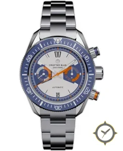 Eine Taucheruhr-Uhr mit einem 37.5mm Gehäuse im Vintage-Stil gefertigt aus Edelstahl mit einem Zifferblatt in weiß und einer besonderen "matte"-Oberfläche.