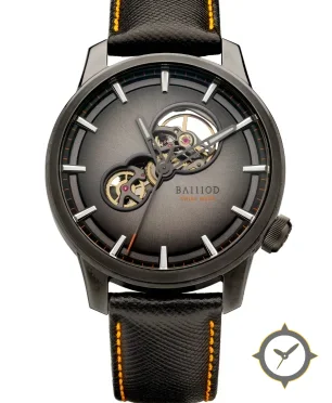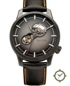 Eine Skelett-Uhr mit einem vielseitigen 39.5mm Gehäuse, das an fast jedes Handgelenk passt, gefertigt aus Edelstahl mit einem Zifferblatt in grau und einer besonderen "sunburst gradient"-Oberfläche.