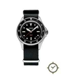 Eine Taucheruhr-Uhr mit einem markanten 41.5mm Auftritt am Handgelenk, gefertigt aus Edelstahl mit einem Zifferblatt in schwarz und einer besonderen "matte"-Oberfläche.