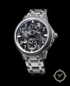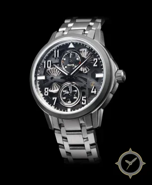 Eine Skelett-Uhr mit einem 37.5mm Gehäuse im Vintage-Stil gefertigt aus Edelstahl mit einem Zifferblatt in schwarz und einer besonderen "skeletonized with brushed surfaces"-Oberfläche und einer praktischen Gangreserveanzeige.