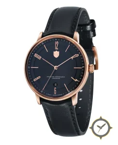 Eine Dress-Uhr mit einem 35.5mm Gehäuse im Vintage-Stil gefertigt aus Beschichtung mit einem Zifferblatt in schwarz und einer besonderen "matte"-Oberfläche.