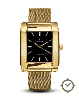 Eine Dress-Uhr mit einem 37.5mm Gehäuse im Vintage-Stil gefertigt aus Gold mit einem Zifferblatt in schwarz und einer besonderen "glossy lacquer"-Oberfläche.