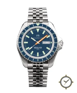 Eine Taucheruhr-Uhr mit einem 37mm Gehäuse im Vintage-Stil gefertigt aus Edelstahl mit einem Zifferblatt in blau und einer besonderen "matte"-Oberfläche und einer echten GMT-Funktion, mit der du eine zweite Zeitzone verfolgen kannst.