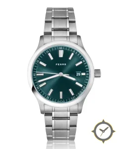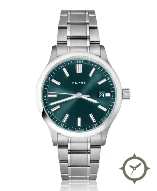 Eine Sport-Uhr mit einem 34mm Gehäuse im Vintage-Stil gefertigt aus Edelstahl mit einem Zifferblatt in grün und einer besonderen "sunburst"-Oberfläche.