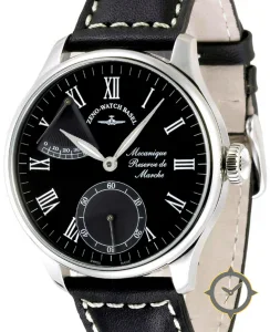 Eine Dress-Uhr gefertigt aus Edelstahl mit einem Zifferblatt in schwarz und einer besonderen "lacquer"-Oberfläche und einer praktischen Gangreserveanzeige.