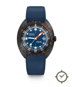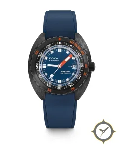 Eine Taucheruhr-Uhr mit einem vielseitigen 39.5mm Gehäuse, das an fast jedes Handgelenk passt, gefertigt aus Carbon mit einem Zifferblatt in blau und einer besonderen "matte"-Oberfläche.