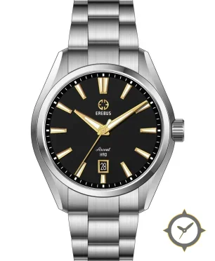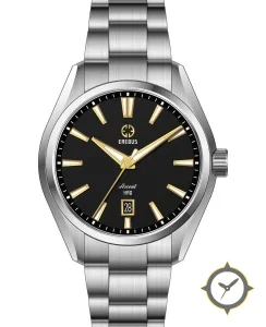 Eine Dress-Uhr mit einem markanten 47mm Auftritt am Handgelenk, gefertigt aus Edelstahl mit einem Zifferblatt in schwarz und einer besonderen "matte"-Oberfläche.