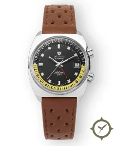Eine GMT-Uhr mit einem vielseitigen 38mm Gehäuse, das an fast jedes Handgelenk passt, gefertigt aus Edelstahl mit einem Zifferblatt in schwarz und einer besonderen "matte"-Oberfläche und einer echten GMT-Funktion, mit der du eine zweite Zeitzone verfolgen kannst.