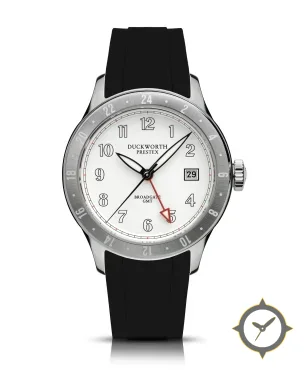 Eine GMT-Uhr mit einem 37mm Gehäuse im Vintage-Stil gefertigt aus Edelstahl mit einem Zifferblatt in weiß und einer besonderen "matte"-Oberfläche und einer echten GMT-Funktion, mit der du eine zweite Zeitzone verfolgen kannst.