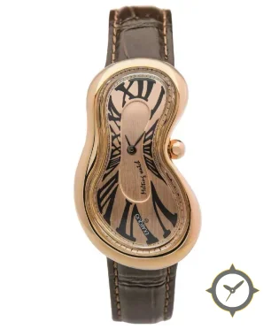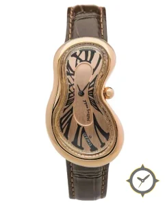 Eine Dress-Uhr gefertigt aus Gold mit einem Zifferblatt in gold und einer besonderen "brushed/satin finish"-Oberfläche.