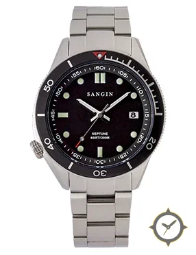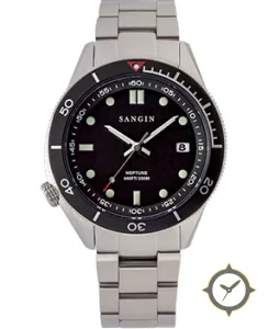 Eine Taucheruhr-Uhr mit einem 32.5mm Gehäuse im Vintage-Stil gefertigt aus Edelstahl mit einem Zifferblatt in schwarz und einer besonderen "matte"-Oberfläche.