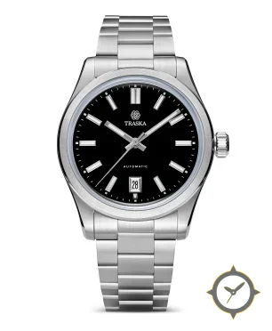 Eine Sport-Uhr mit einem markanten 44.5mm Auftritt am Handgelenk, gefertigt aus Edelstahl mit einem Zifferblatt in schwarz und einer besonderen "glossy lacquer"-Oberfläche.